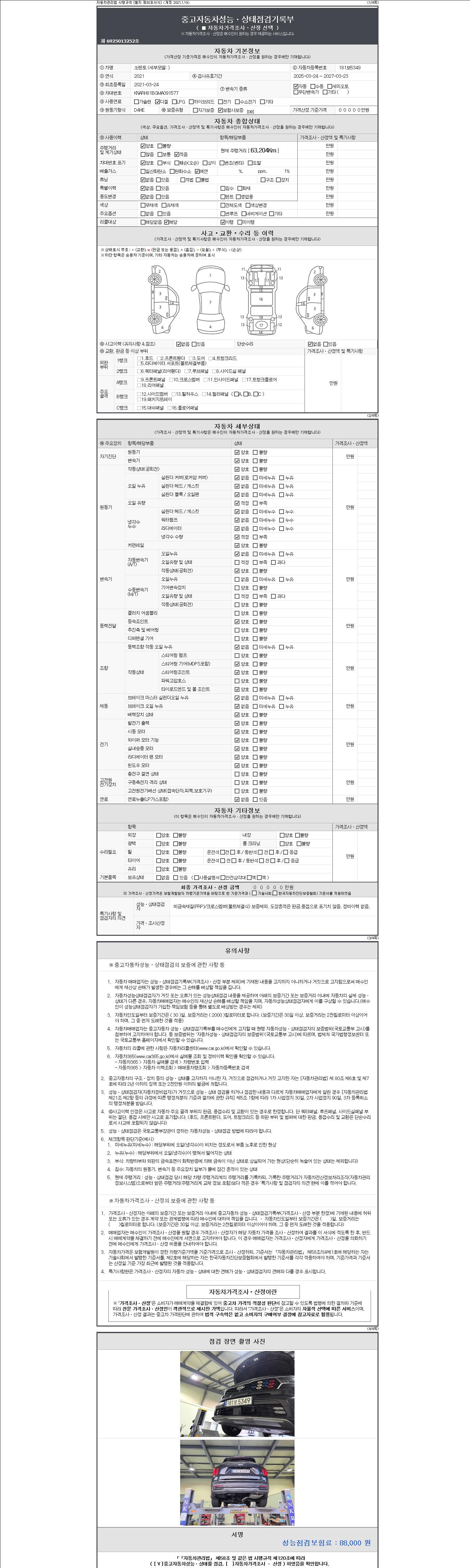 2. 차량 등록증이나 성능점검지 등을 상담자에게 요청및 확인하시고 사전에 미리 점검 하시기를 권유드립니다.