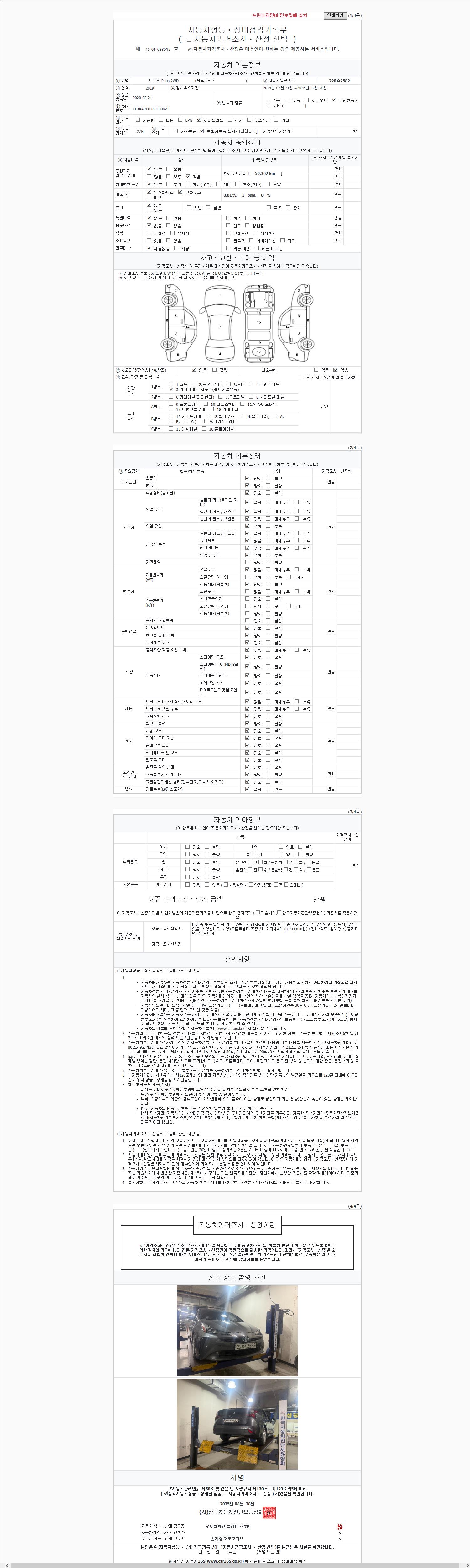 사고유무 성능기록부 참조 제시번호 제 2147483647 호