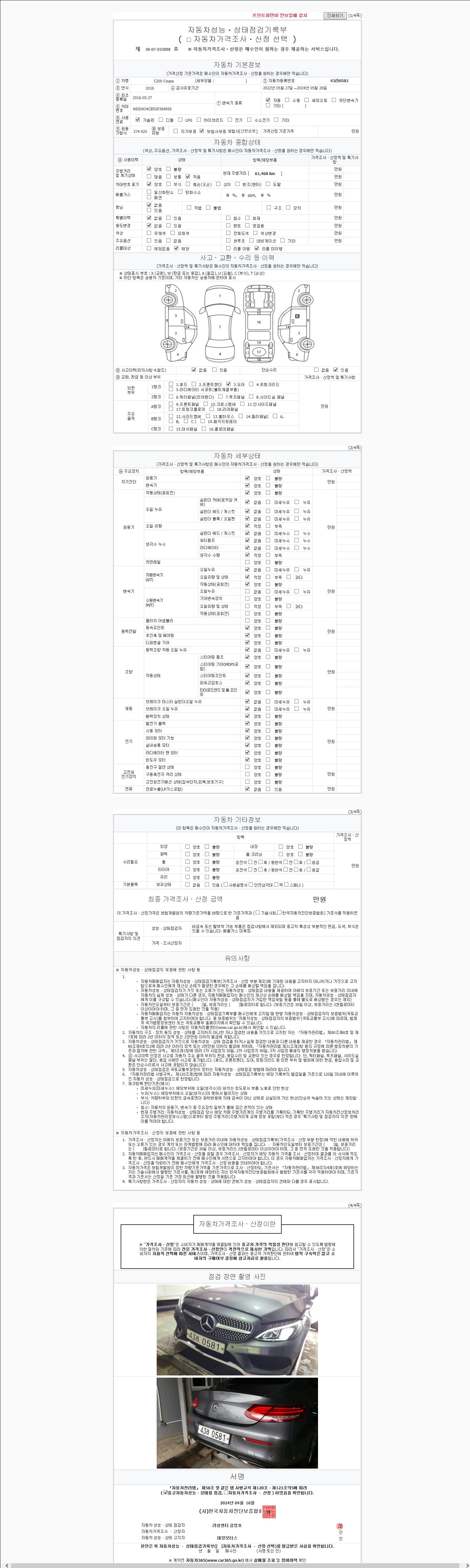 사고유무 성능기록부 참조 제시번호 제 2147483647 호