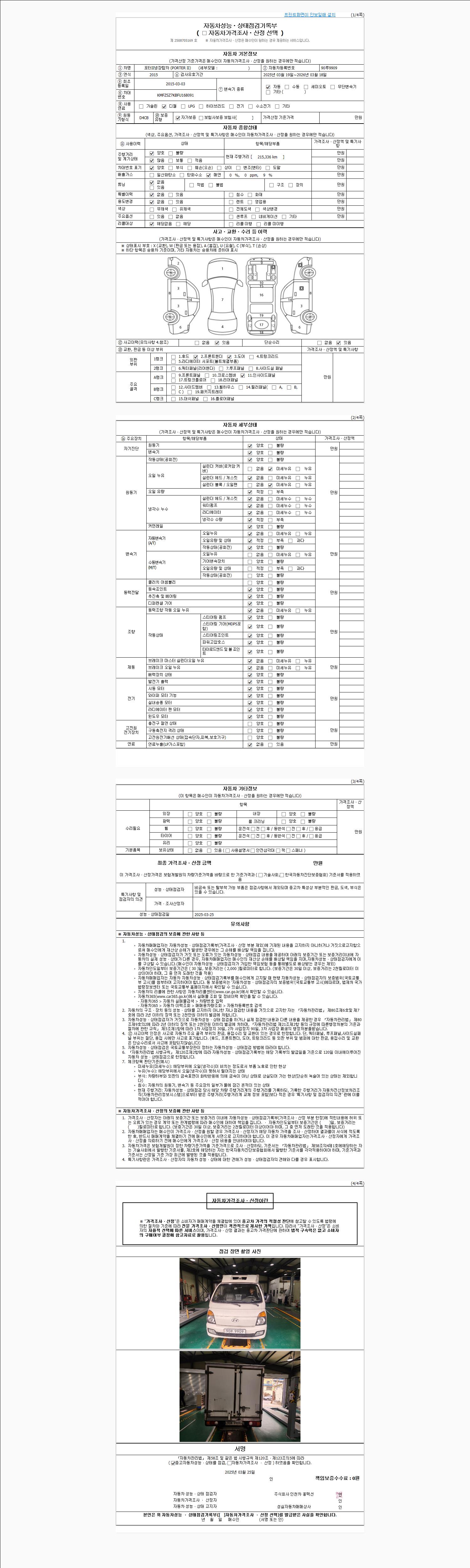 사고유무 성능기록부 참조 제시번호 제 2025015368 호