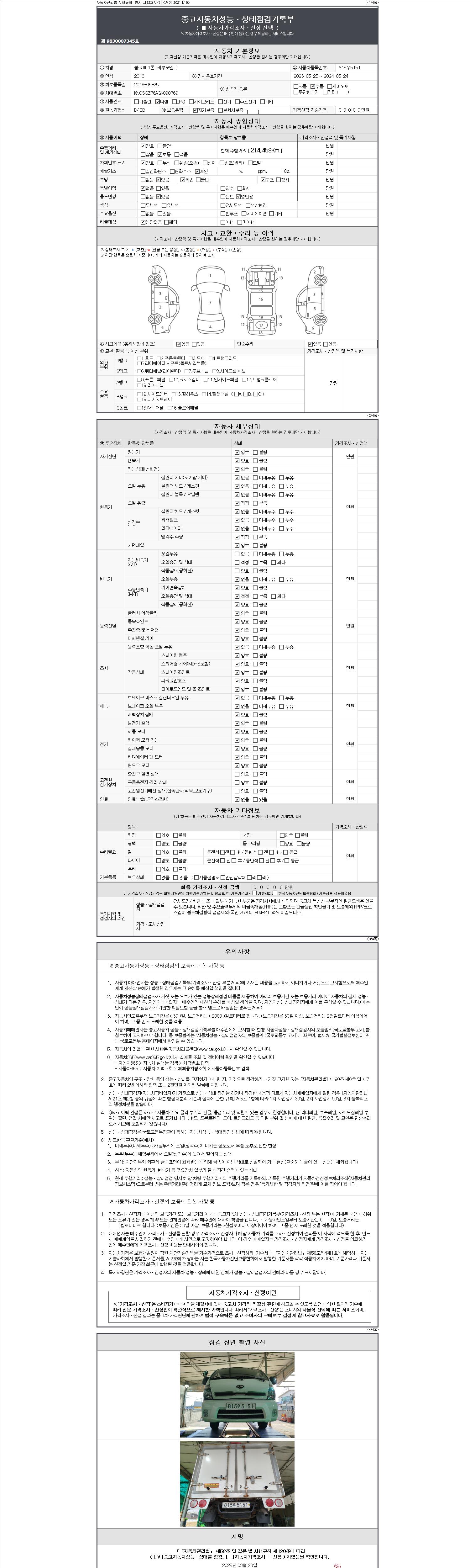 2. 차량 등록증이나 성능점검지 등을 상담자에게 요청및 확인하시고 사전에 미리 점검 하시기를 권유드립니다.