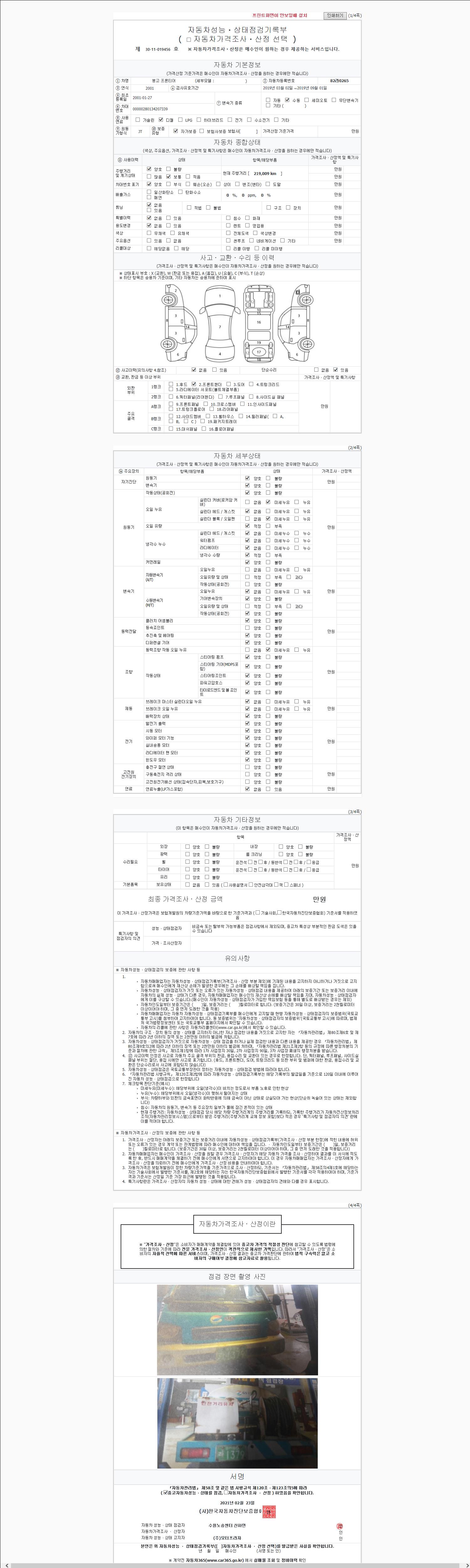 2. 차량 등록증이나 성능점검지 등을 상담자에게 요청및 확인하시고 사전에 미리 점검 하시기를 권유드립니다.