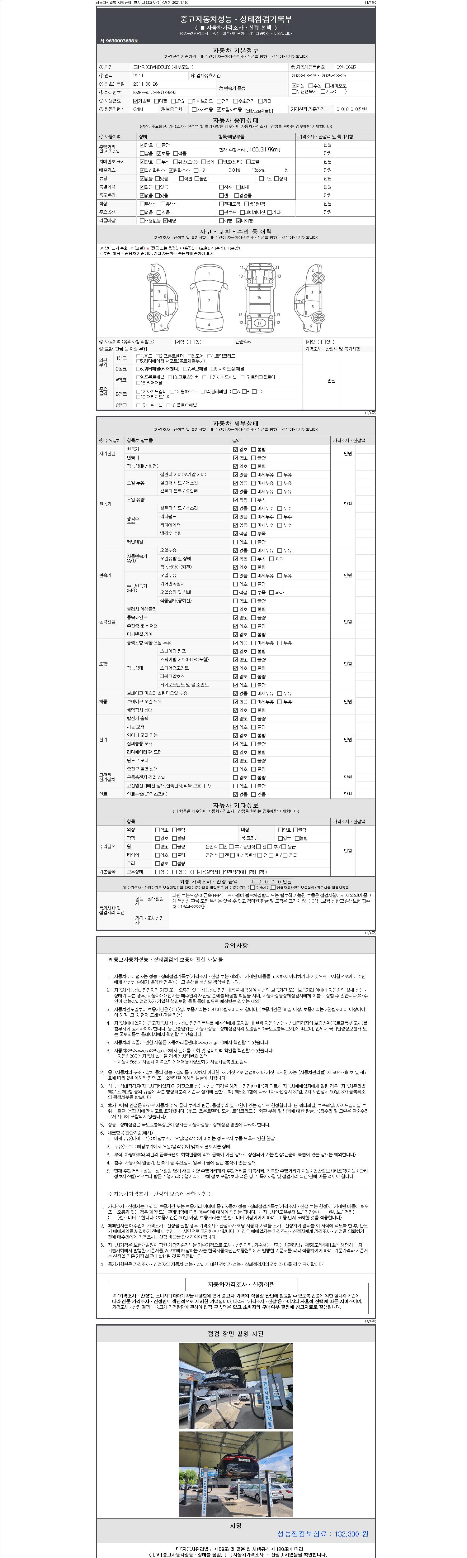 -중고자동차 매매업자를 통해 차량을 구입하실 경우 반드시 "중고자동차 성능, 상태점검 기록부"를 교뷰 받으셔야 하며, 매매업자는 반드시 의무 교부 하여야 압니다.
