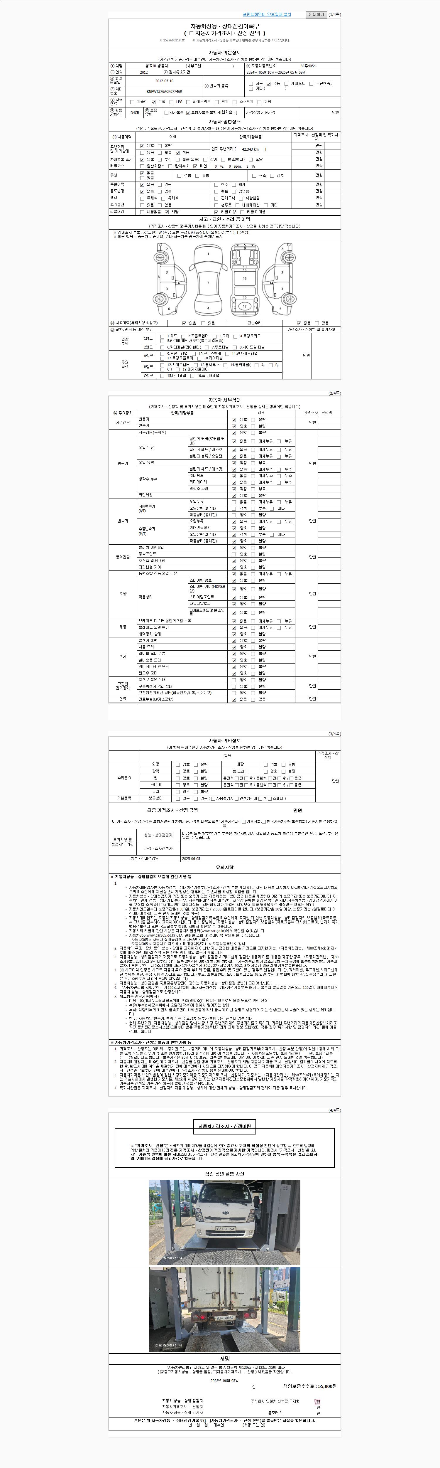 사고유무 성능기록부 참조 제시번호 제 2025029842 호