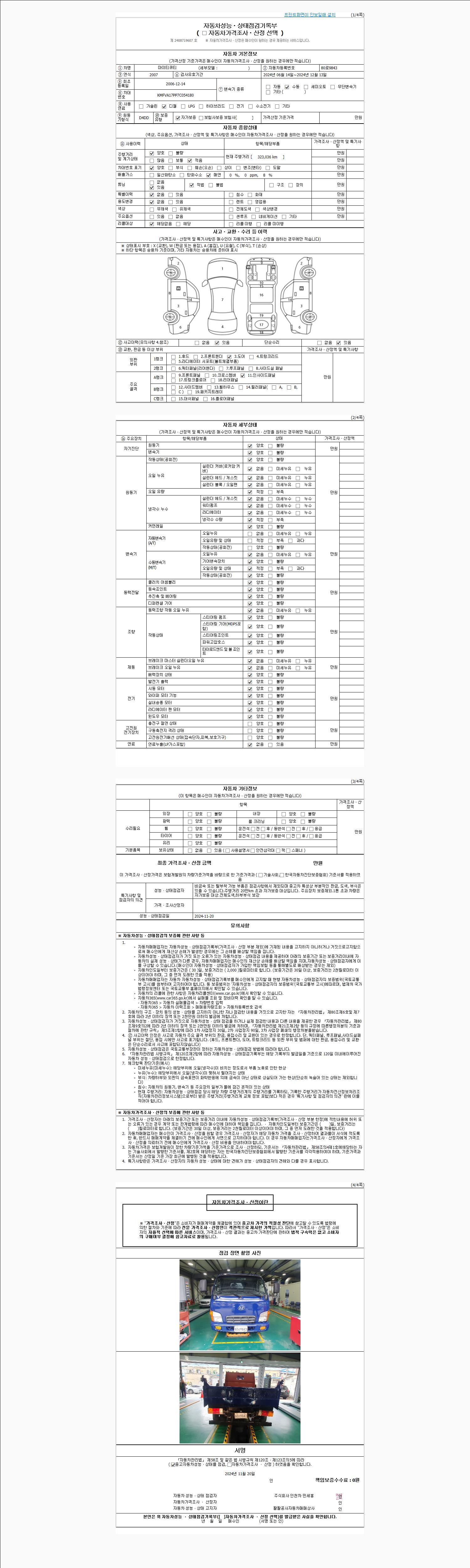 사고유무 성능기록부 참조 제시번호 제 2024050408 호
