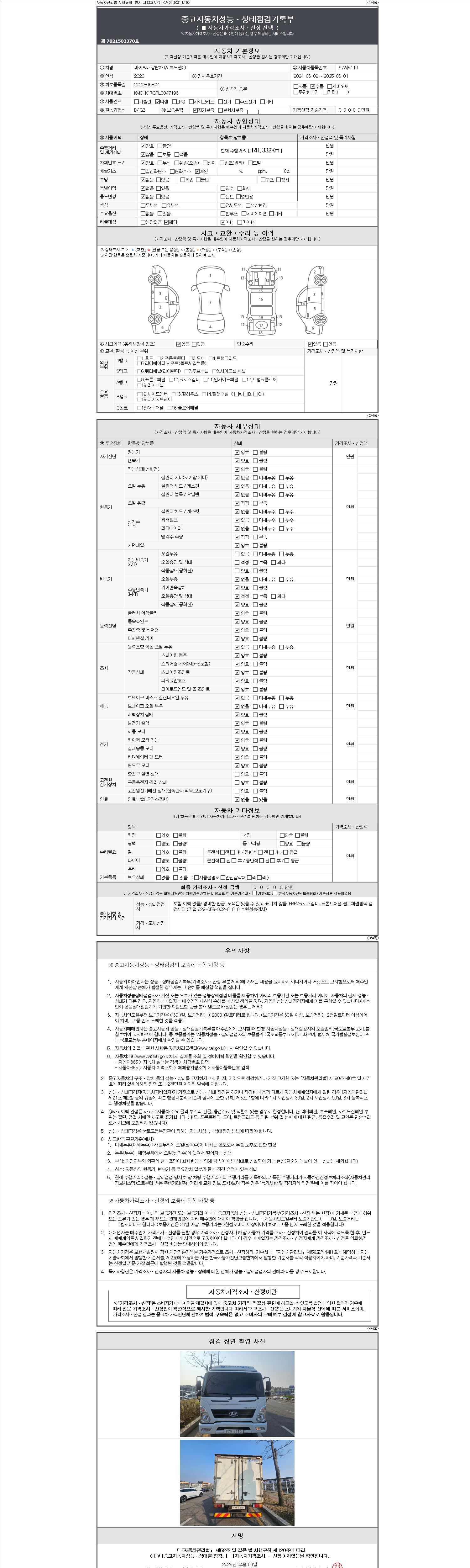 사고유무 성능기록부 참조 제시번호 제 2147483647 호
