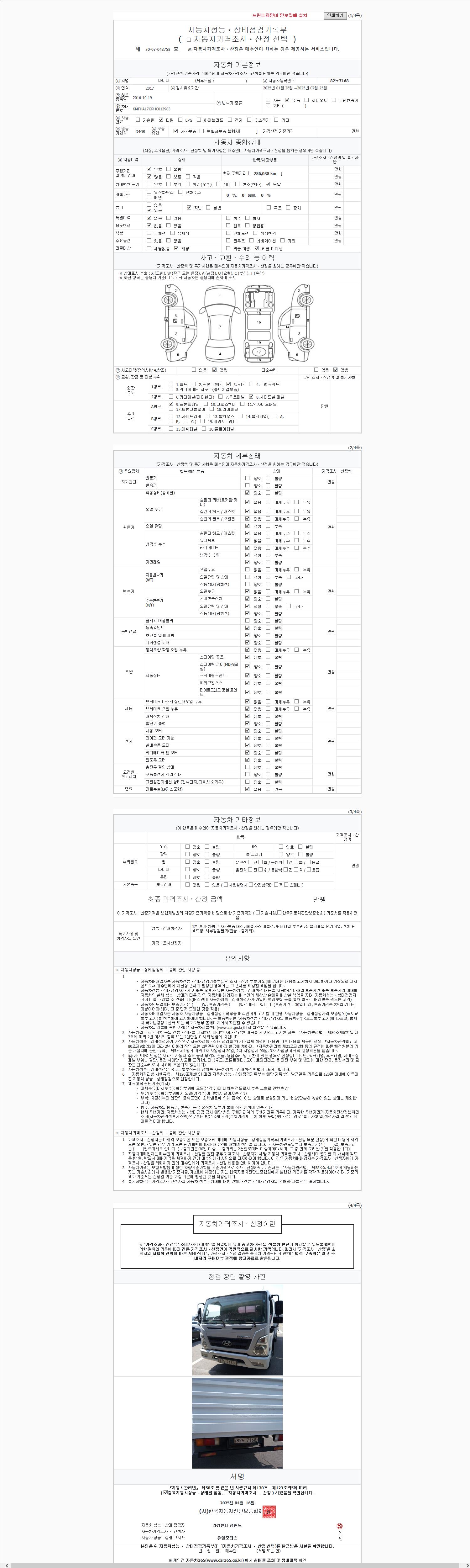 사고유무 성능기록부 참조 제시번호 제 2147483647 호