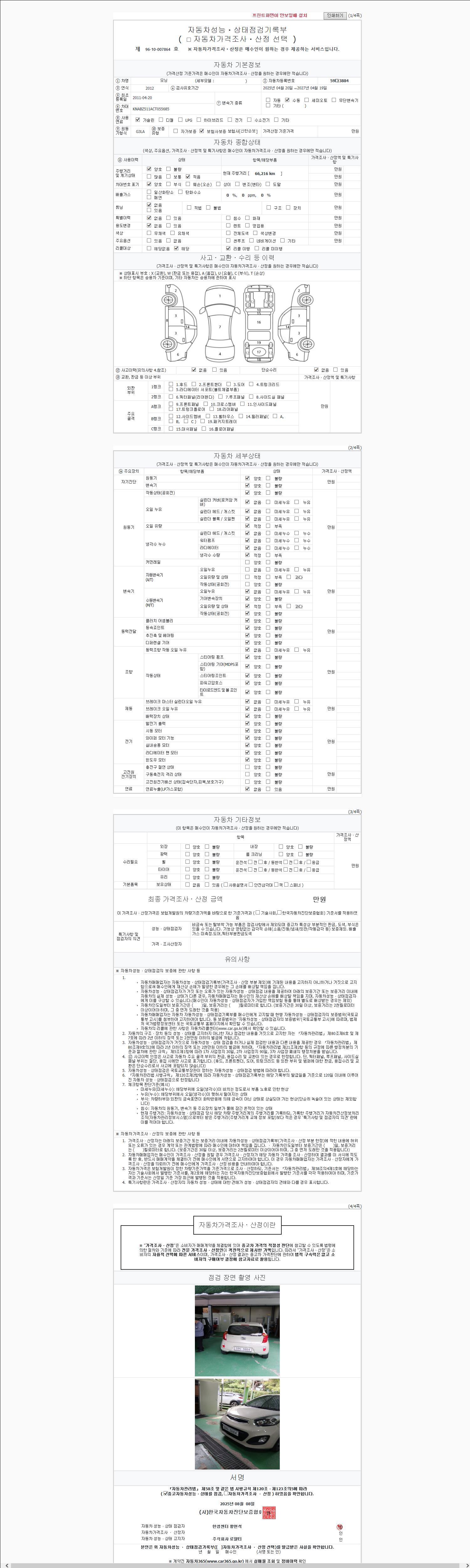 사고유무 성능기록부 참조 제시번호 제 2025107588 호