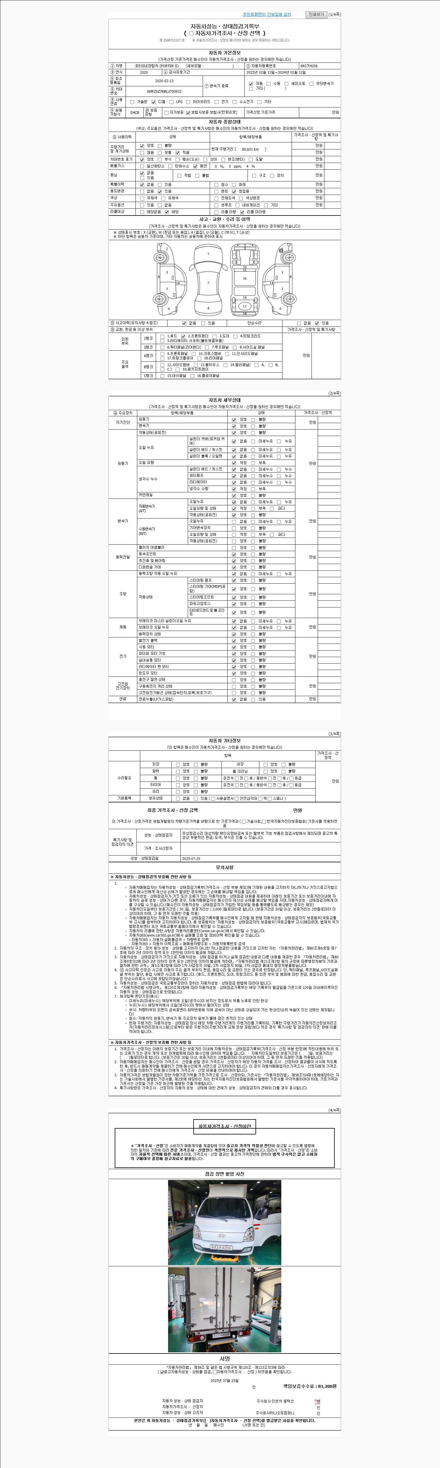 사고유무 성능기록부 참조 제시번호 제 2025038451 호