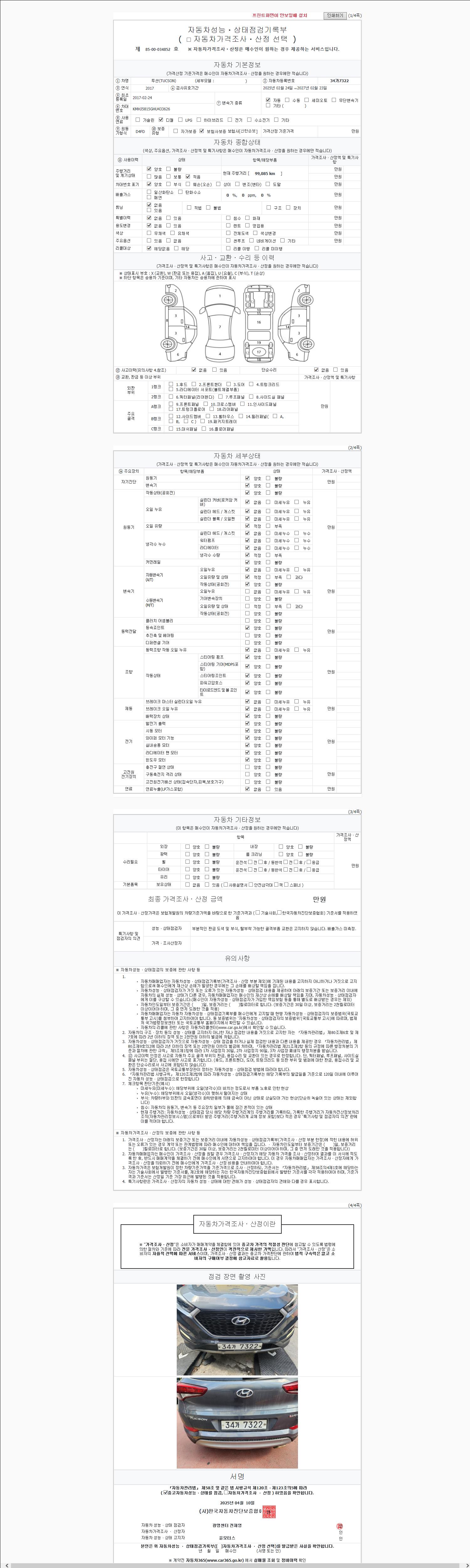 주행거리 99,033 km 차량번호 34가7322