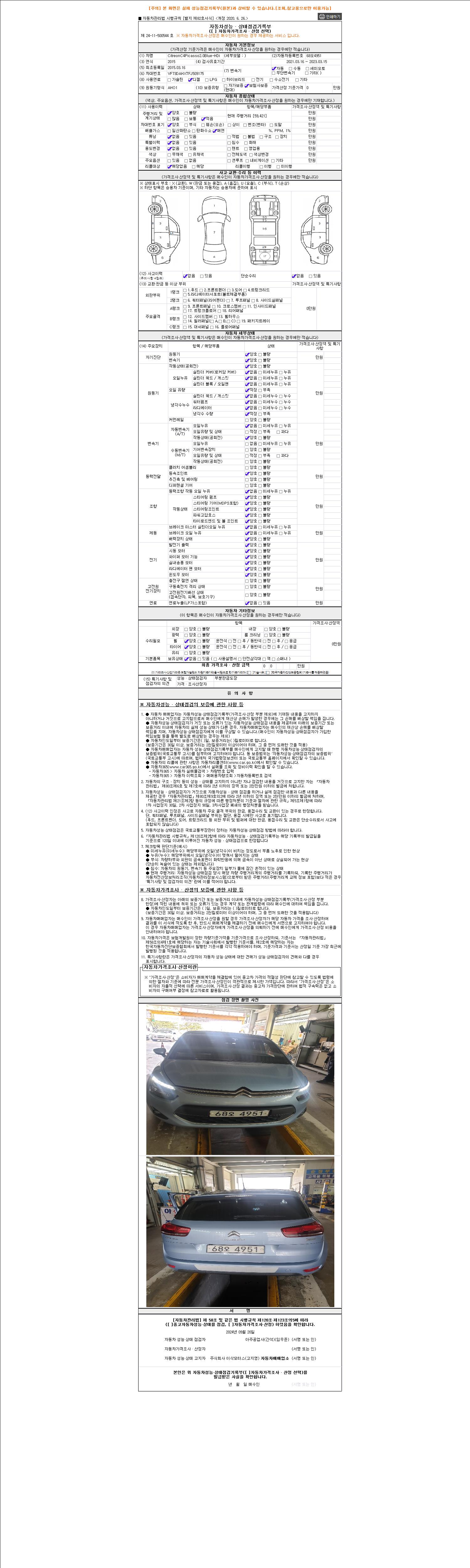 사고유무 성능기록부 참조 제시번호 제 2022021442 호