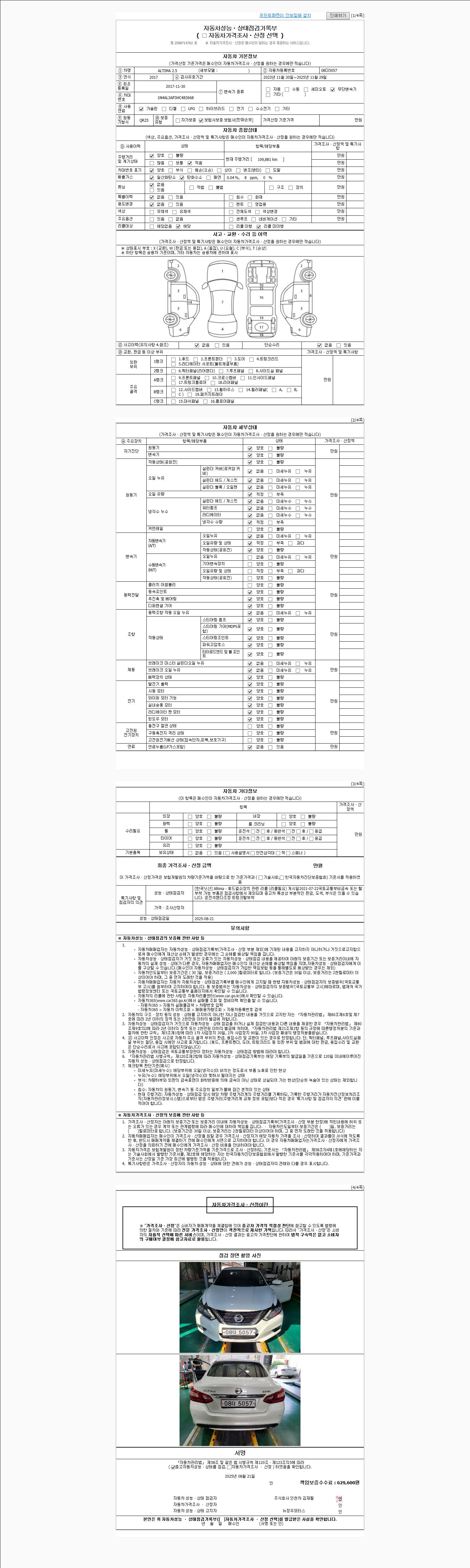 사고유무 성능기록부 참조 제시번호 제 2025045560 호