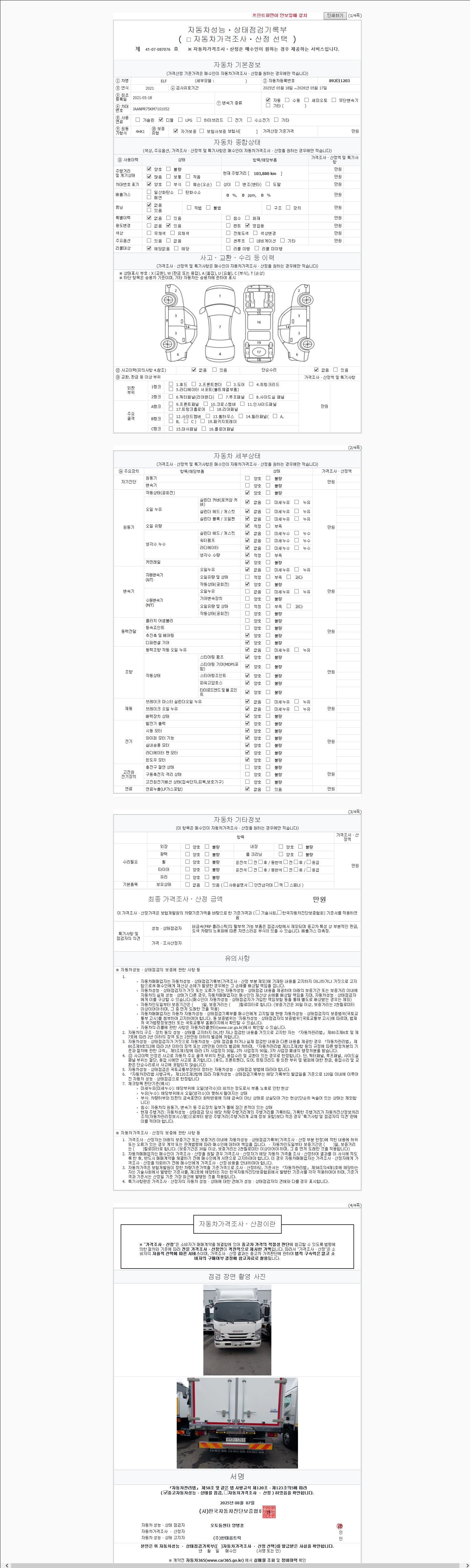 2. 차량 등록증이나 성능점검지 등을 상담자에게 요청및 확인하시고 사전에 미리 점검 하시기를 권유드립니다.