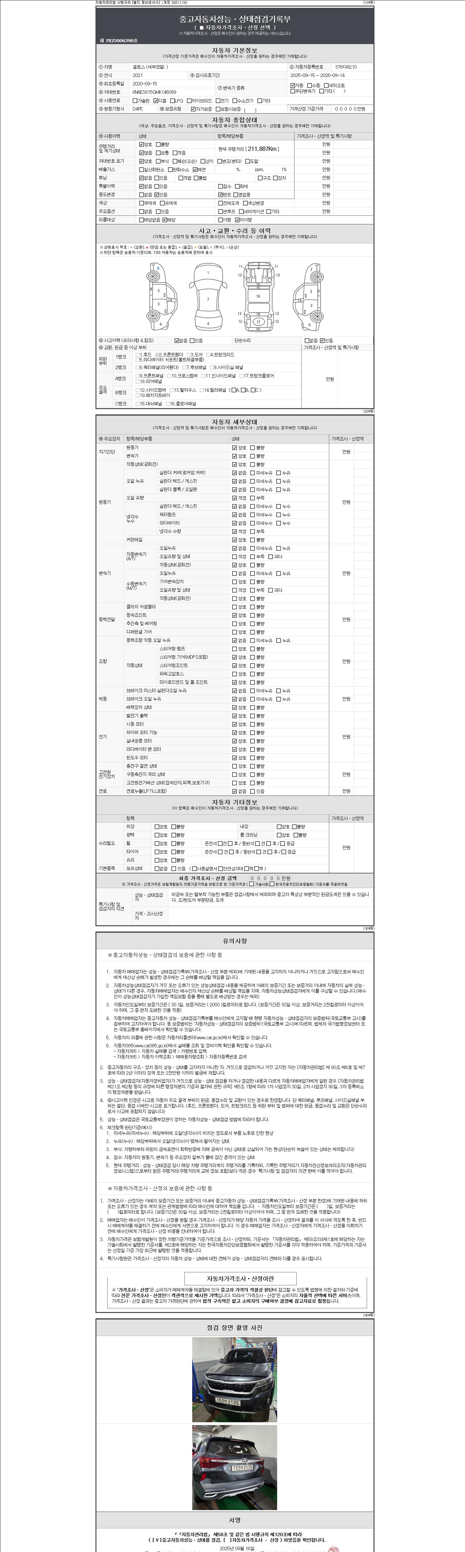 -중고자동차 매매업자를 통해 차량을 구입하실 경우 반드시 "중고자동차 성능, 상태점검 기록부"를 교뷰 받으셔야 하며, 매매업자는 반드시 의무 교부 하여야 압니다.