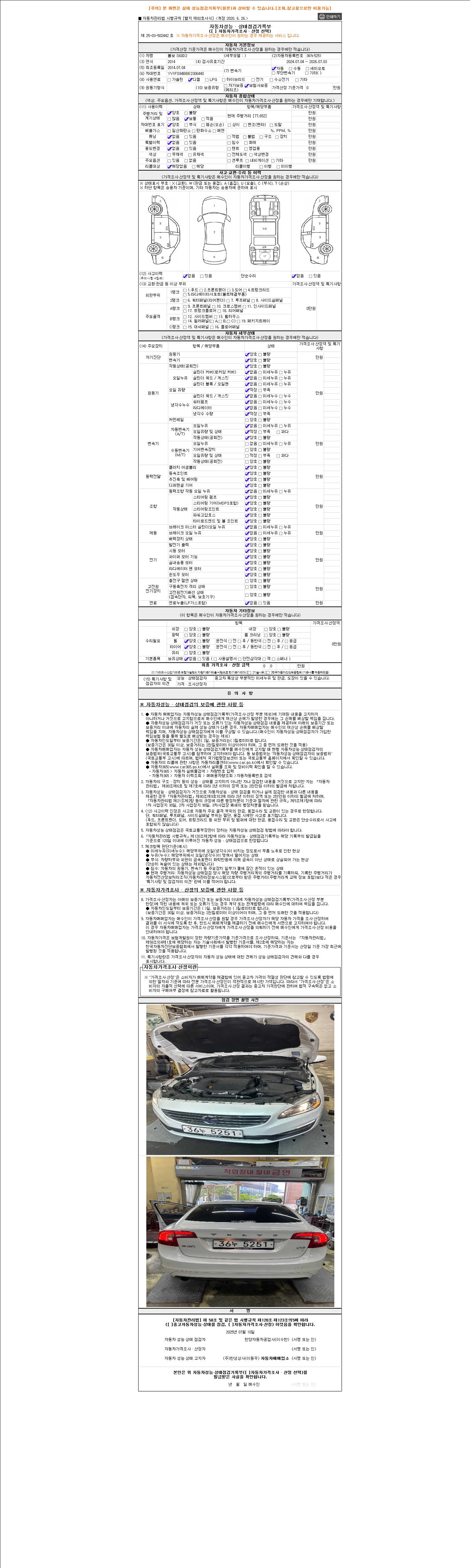 사고유무 성능기록부 참조 제시번호 제 2025090501 호