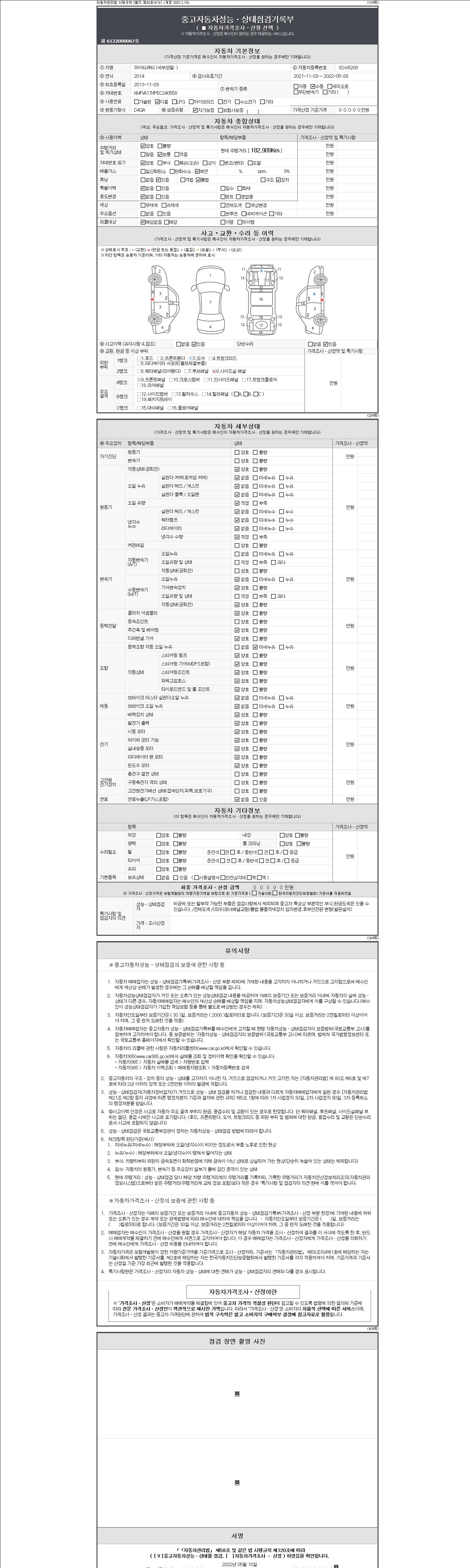 -중고자동차 매매업자를 통해 차량을 구입하실 경우 반드시 "중고자동차 성능, 상태점검 기록부"를 교뷰 받으셔야 하며, 매매업자는 반드시 의무 교부 하여야 압니다.