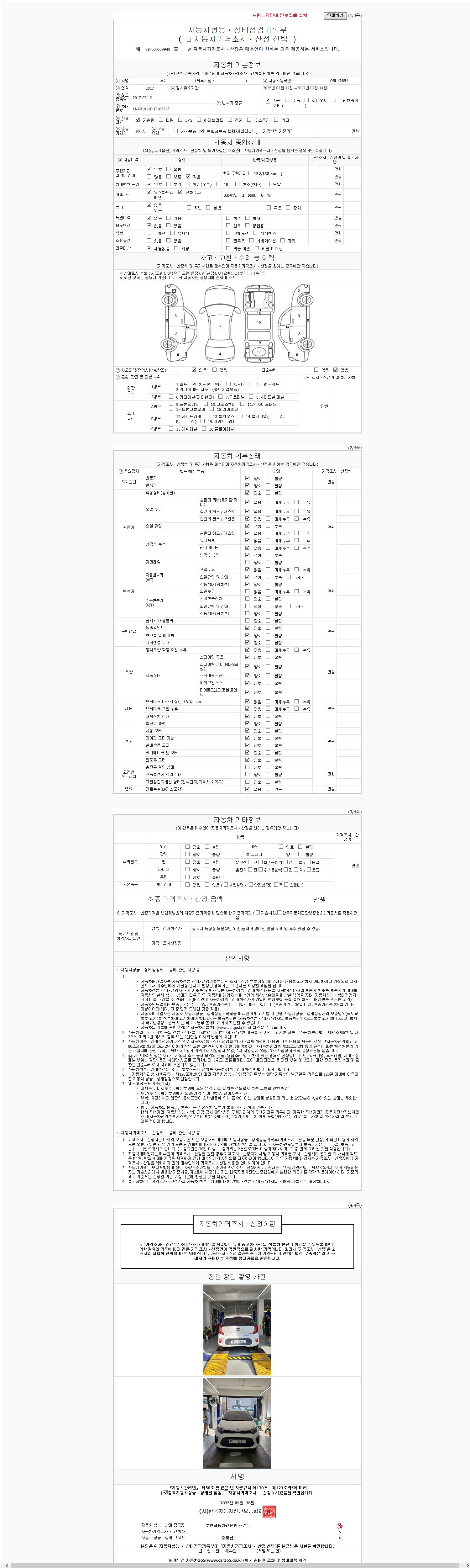 사고유무 성능기록부 참조 제시번호 제 2025181809 호