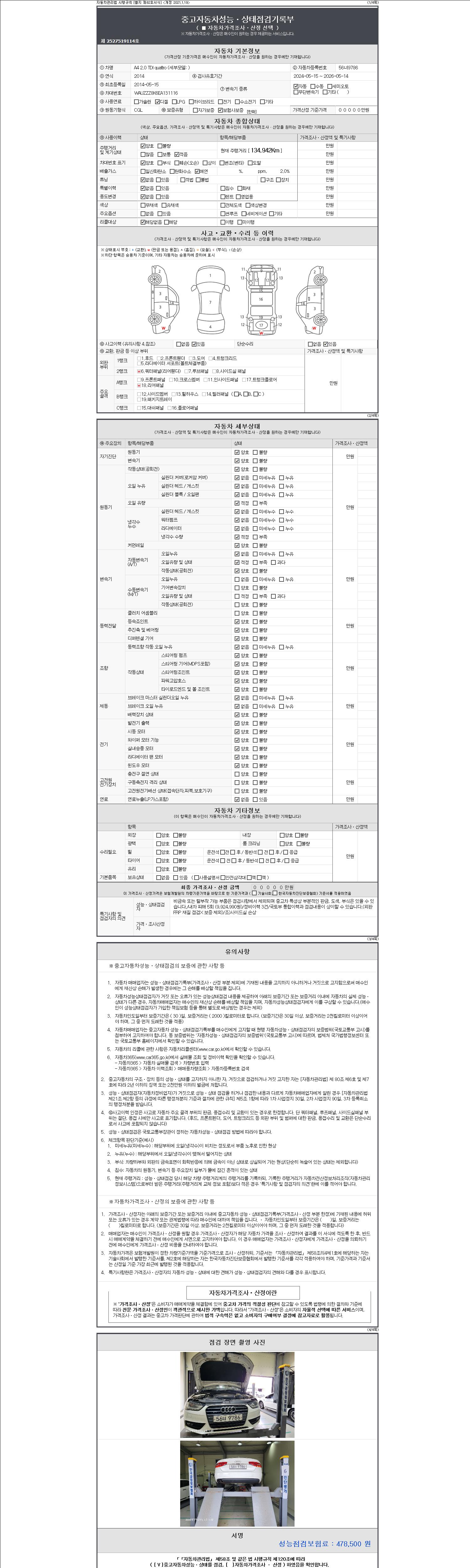 2. 차량 등록증이나 성능점검지 등을 상담자에게 요청및 확인하시고 사전에 미리 점검 하시기를 권유드립니다.