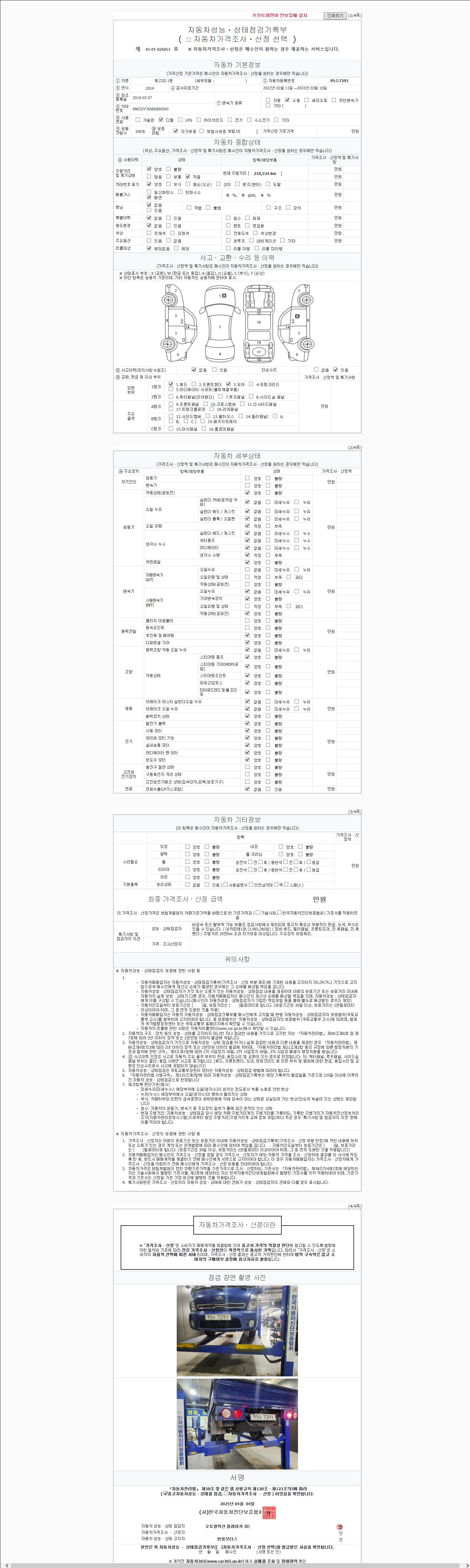 주행거리 210,504 km 차량번호 95수7291