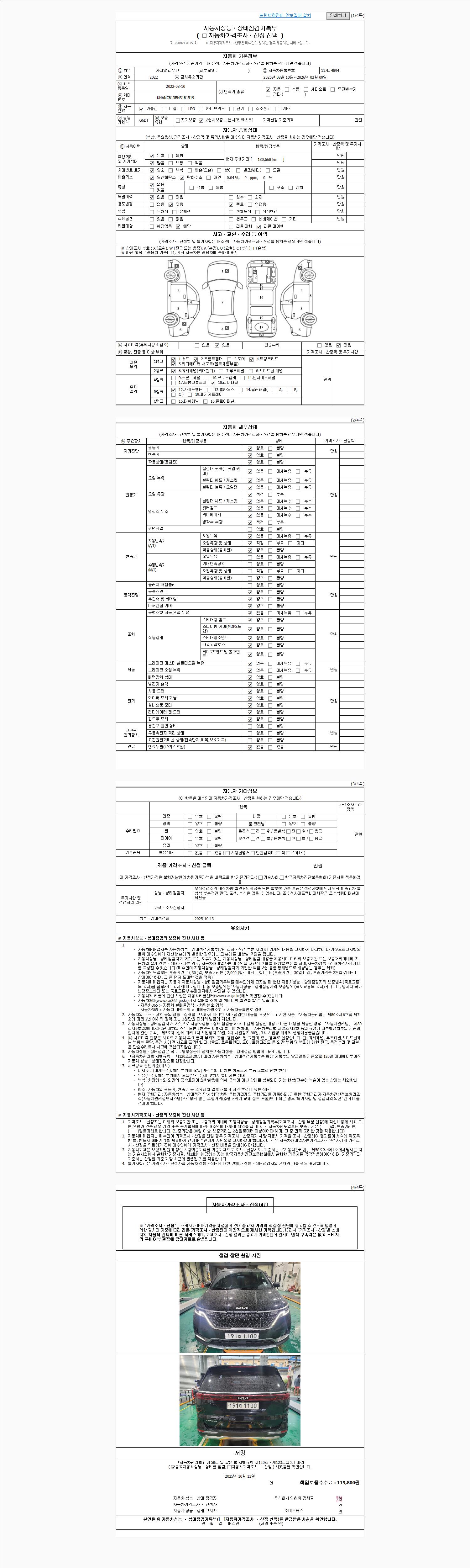 사고유무 성능기록부 참조 제시번호 제 2025054726 호