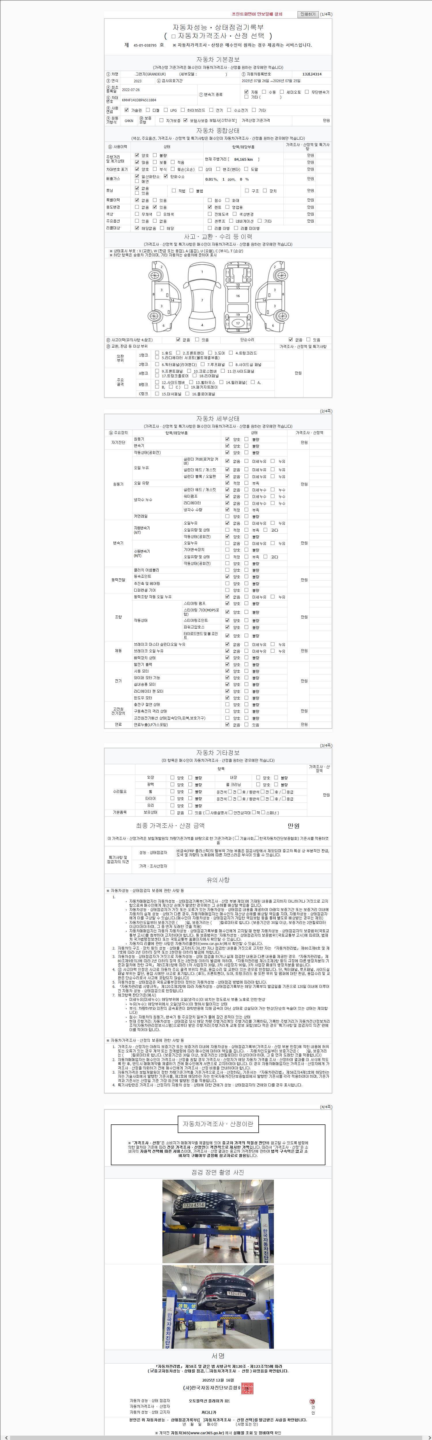 -중고자동차 매매업자를 통해 차량을 구입하실 경우 반드시 "중고자동차 성능, 상태점검 기록부"를 교뷰 받으셔야 하며, 매매업자는 반드시 의무 교부 하여야 압니다.