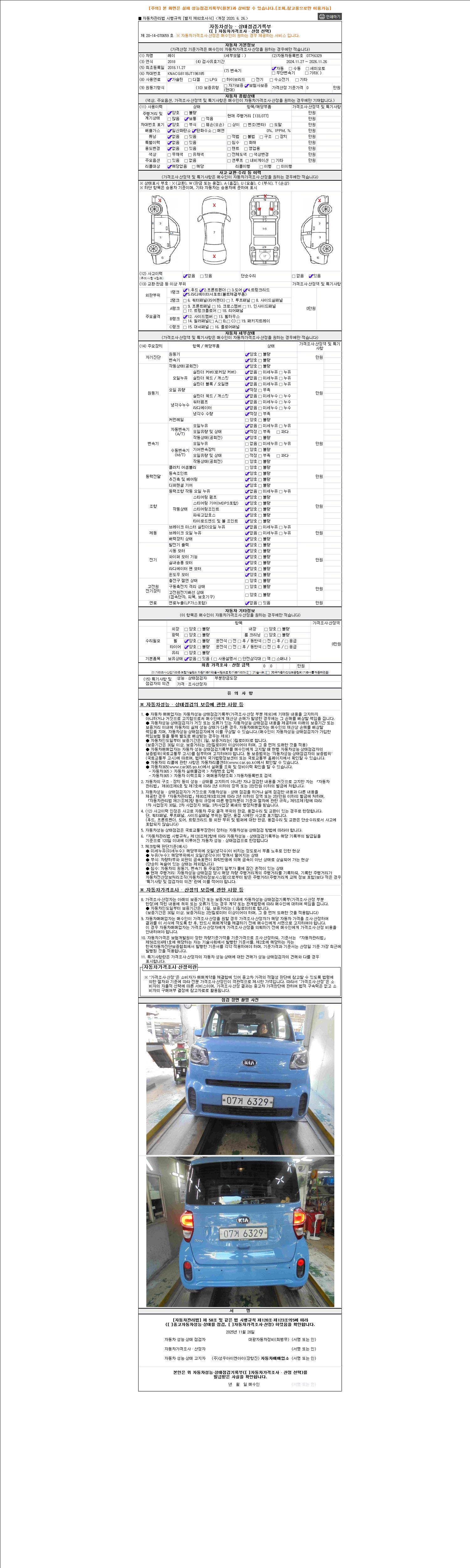 2. 차량 등록증이나 성능점검지 등을 상담자에게 요청및 확인하시고 사전에 미리 점검 하시기를 권유드립니다.