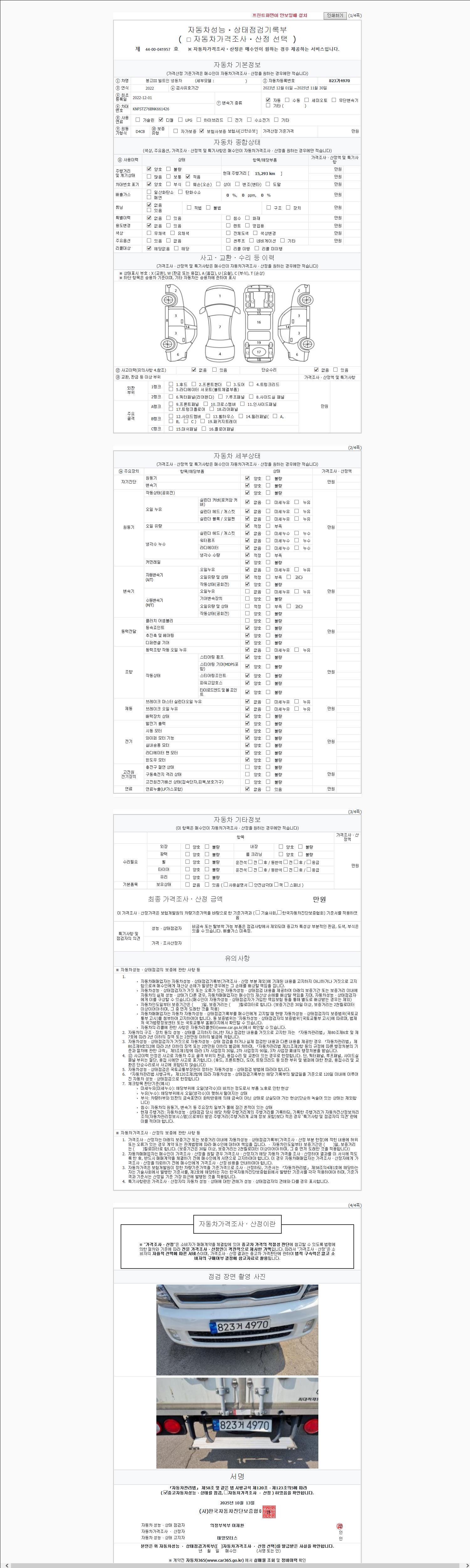 2. 차량 등록증이나 성능점검지 등을 상담자에게 요청및 확인하시고 사전에 미리 점검 하시기를 권유드립니다.
