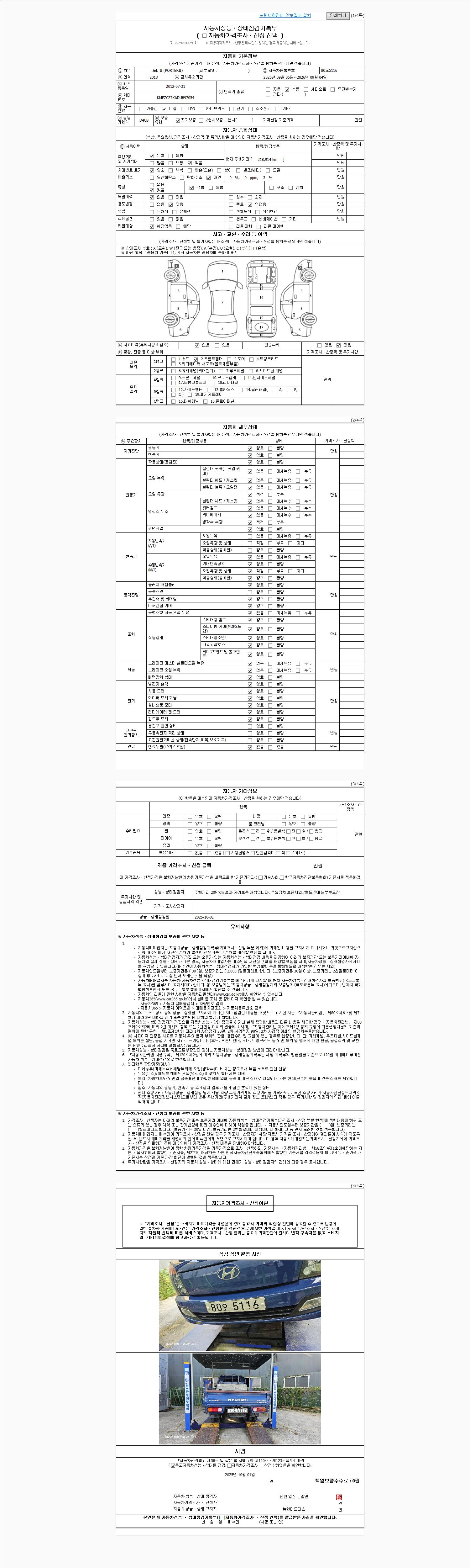 사고유무 성능기록부 참조 제시번호 제 2025050866 호