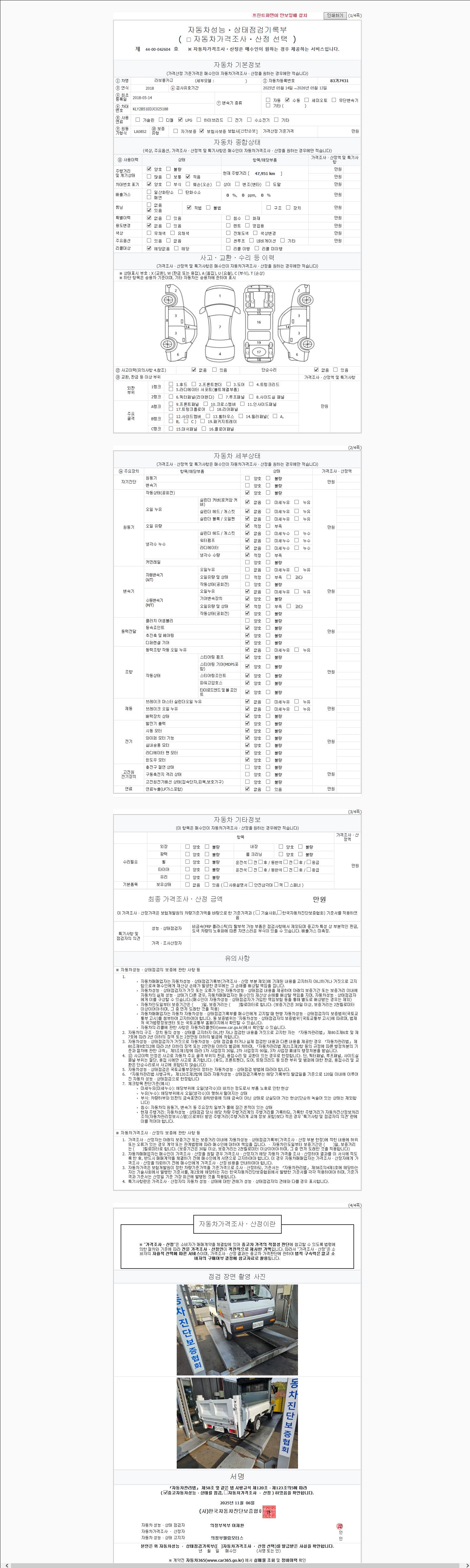 사고유무 성능기록부 참조 제시번호 제 2025202555 호