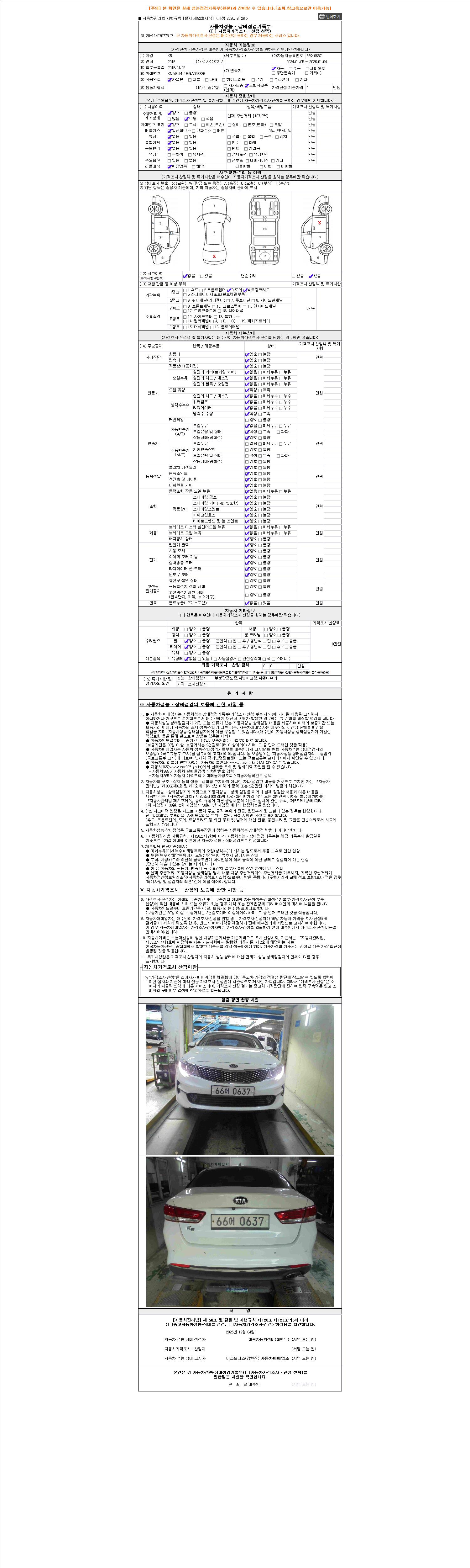 사고유무 성능기록부 참조 제시번호 제 2025165030 호