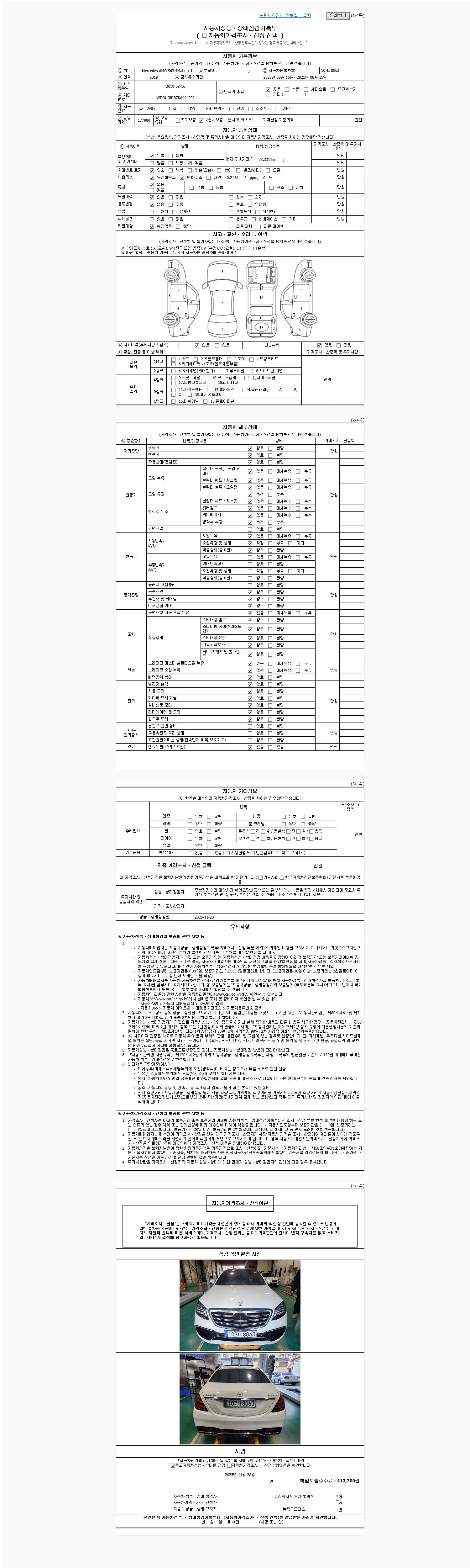 사고유무 성능기록부 참조 제시번호 제 2025041334 호