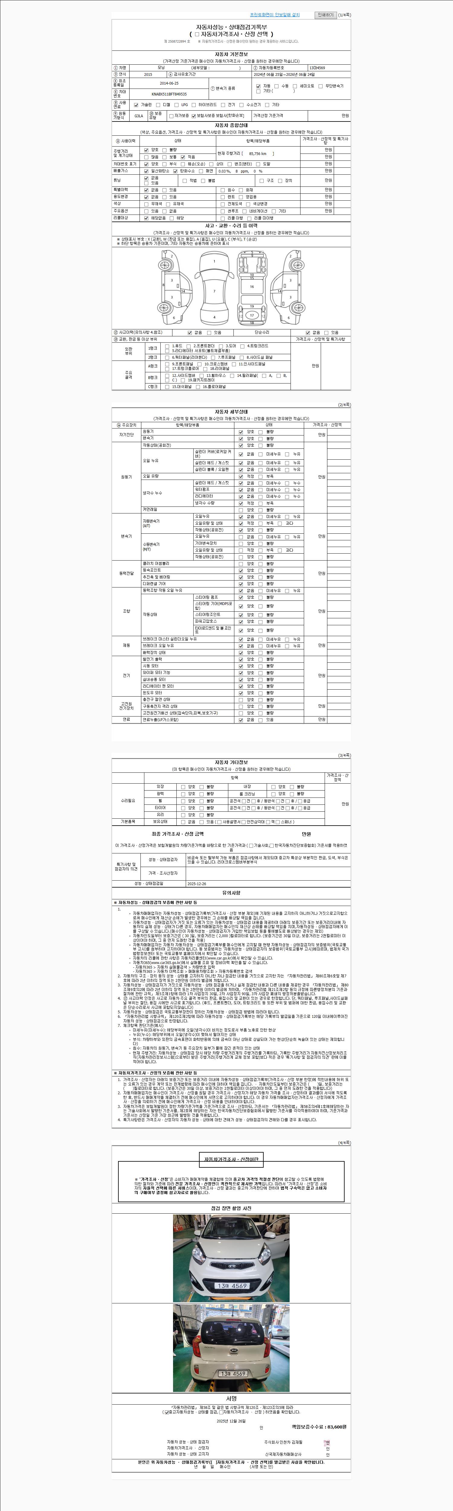 사고유무 성능기록부 참조 제시번호 제 2025068831 호