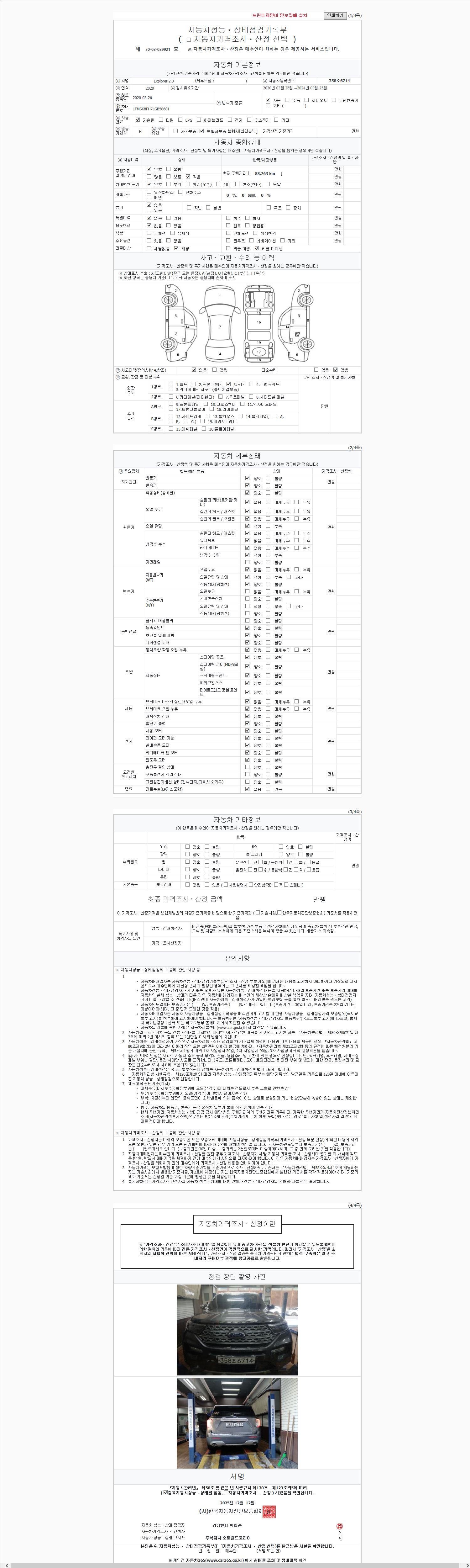 사고유무 성능기록부 참조 제시번호 제 2025166276 호