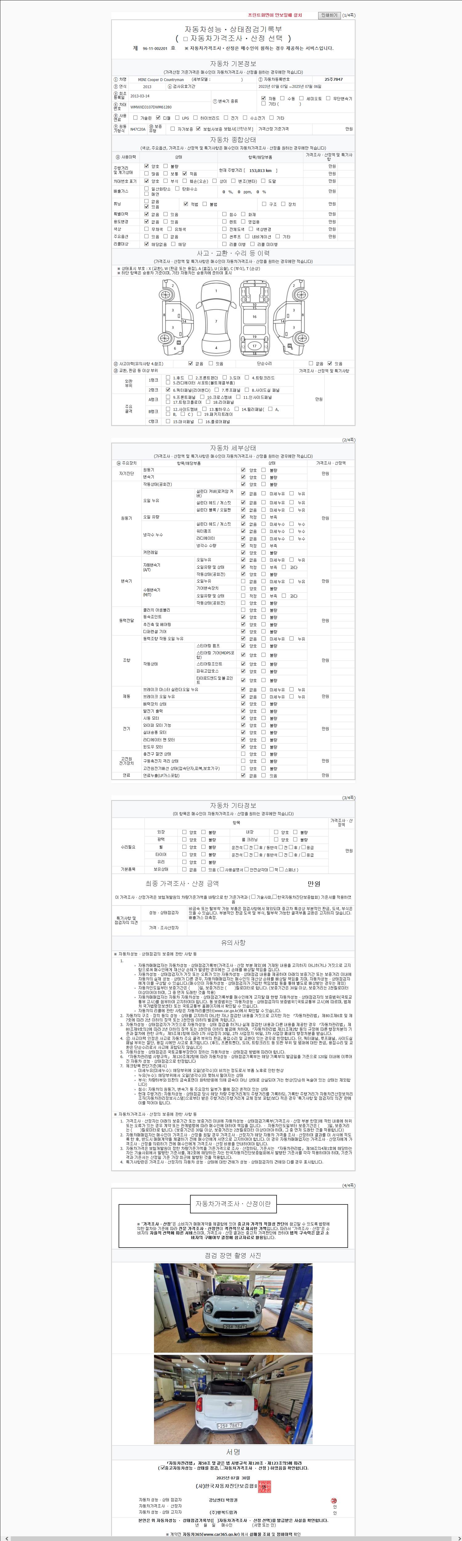 2. 차량 등록증이나 성능점검지 등을 상담자에게 요청및 확인하시고 사전에 미리 점검 하시기를 권유드립니다.