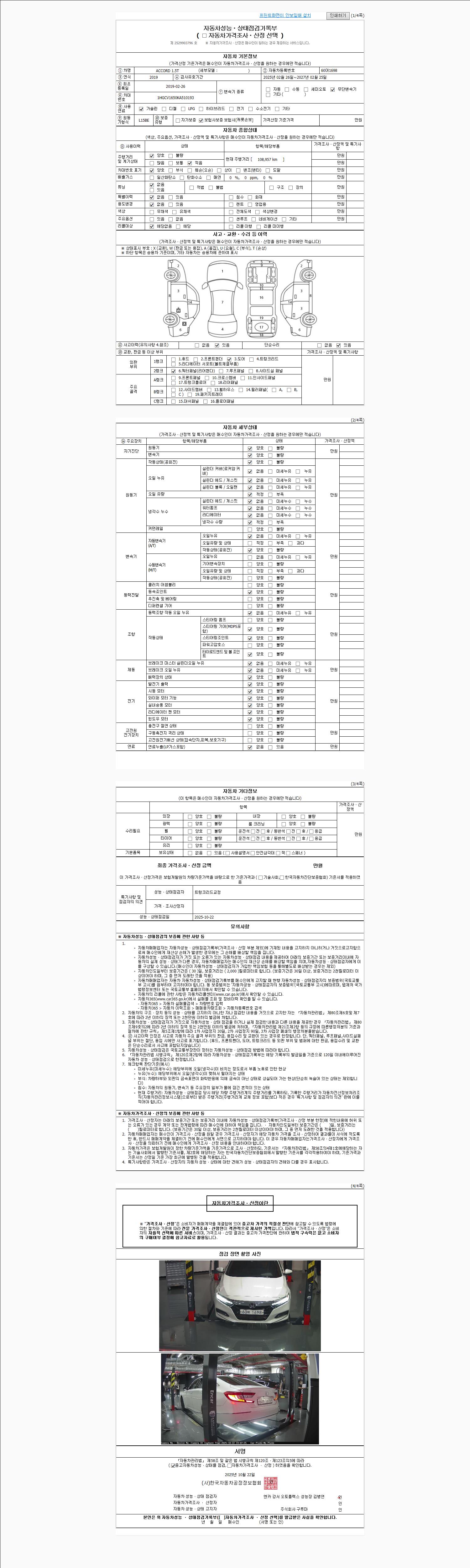 사고유무 성능기록부 참조 제시번호 제 2025109776 호