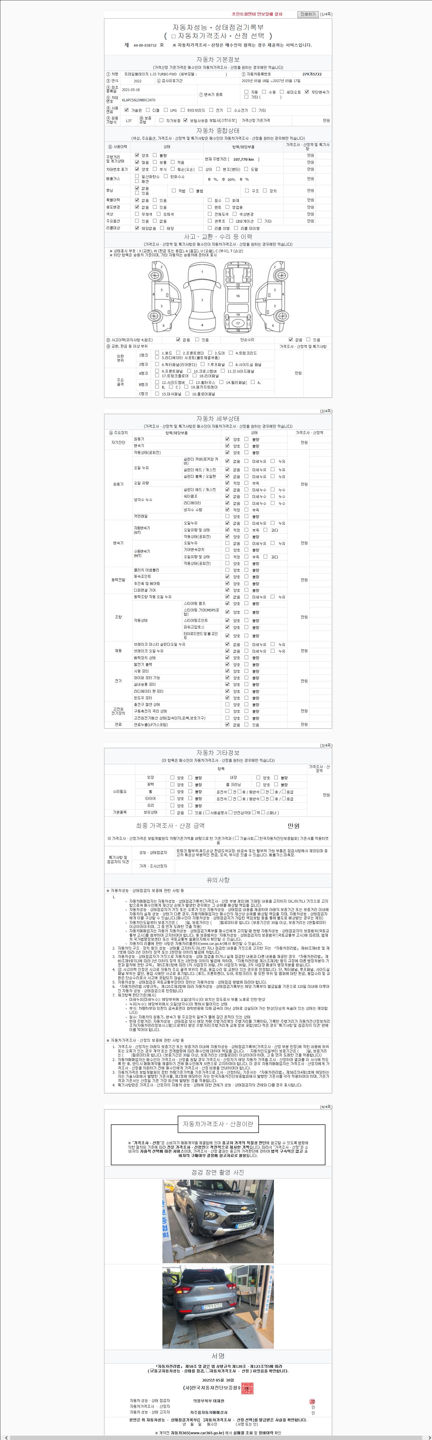 사고유무 성능기록부 참조 제시번호 제 2025098929 호