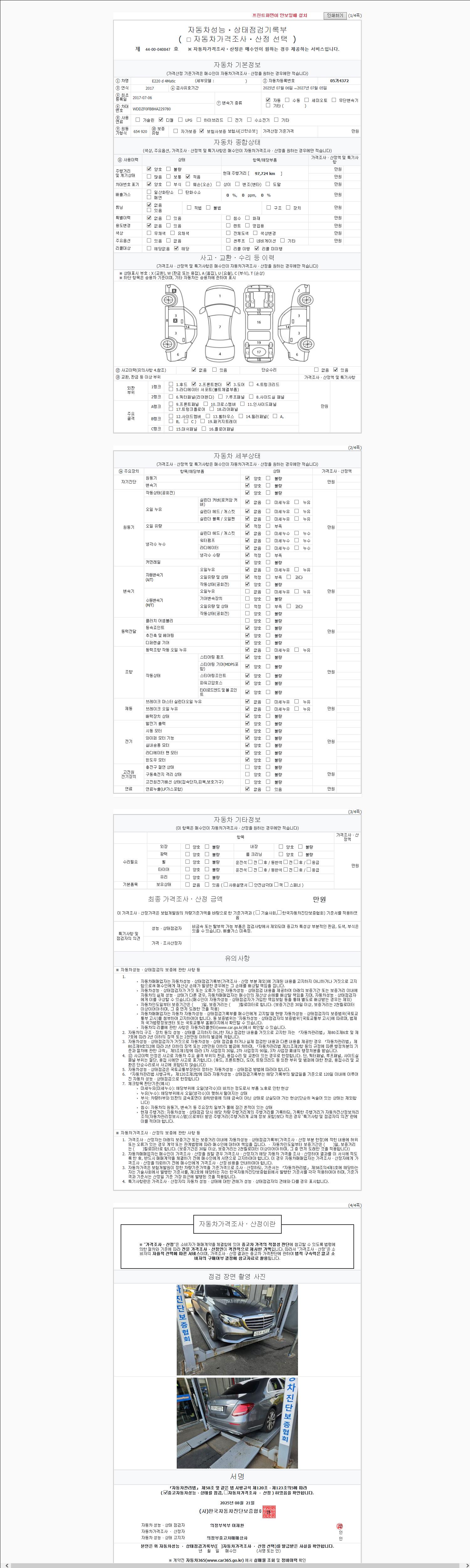 사고유무 성능기록부 참조 제시번호 제 2025155039 호