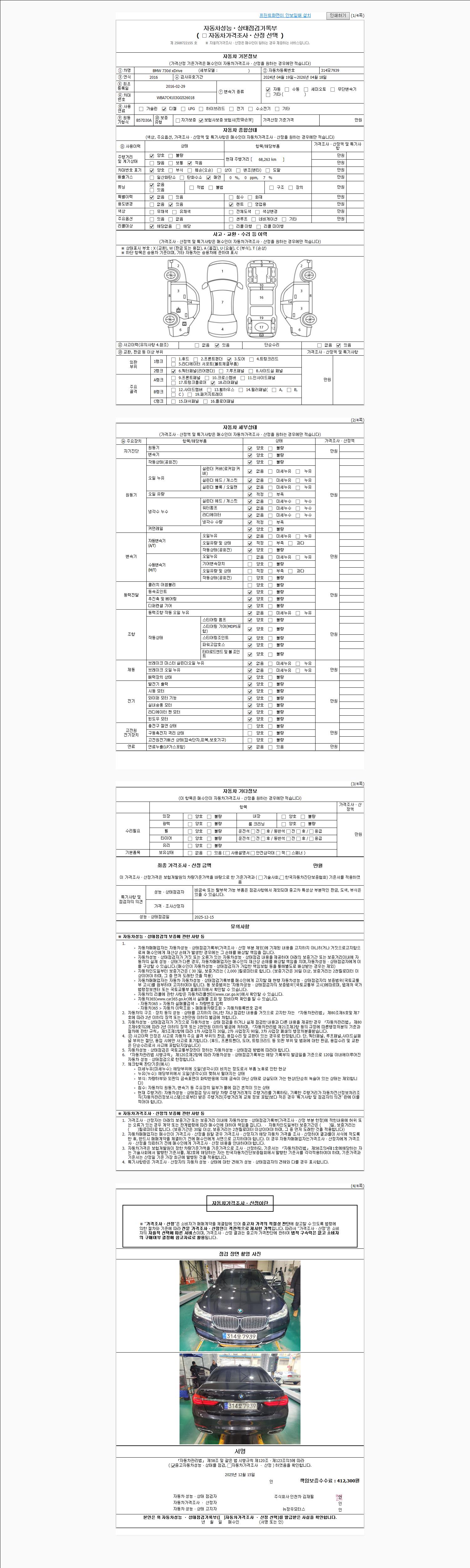 사고유무 성능기록부 참조 제시번호 제 2025068712 호
