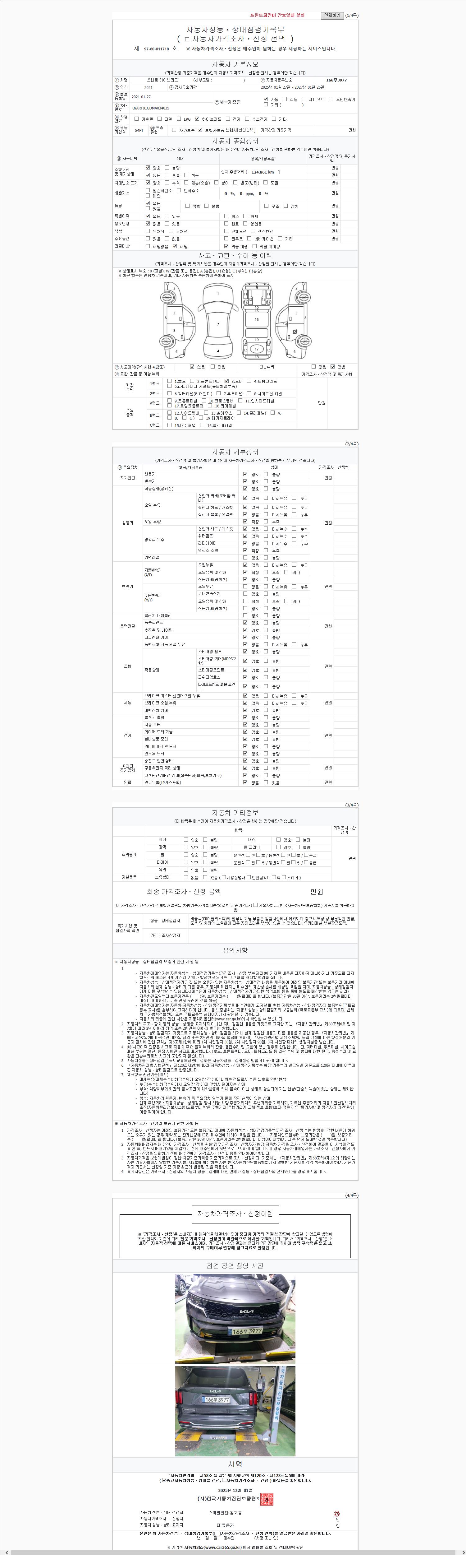 사고유무 성능기록부 참조 제시번호 제 2025163656 호