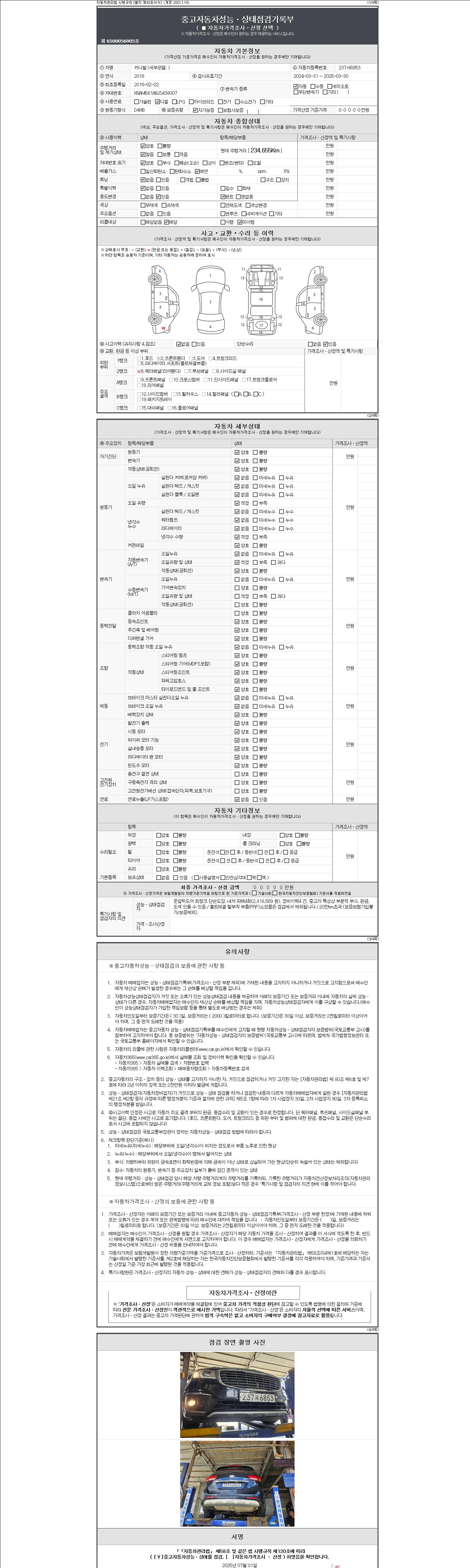 2. 차량 등록증이나 성능점검지 등을 상담자에게 요청및 확인하시고 사전에 미리 점검 하시기를 권유드립니다.