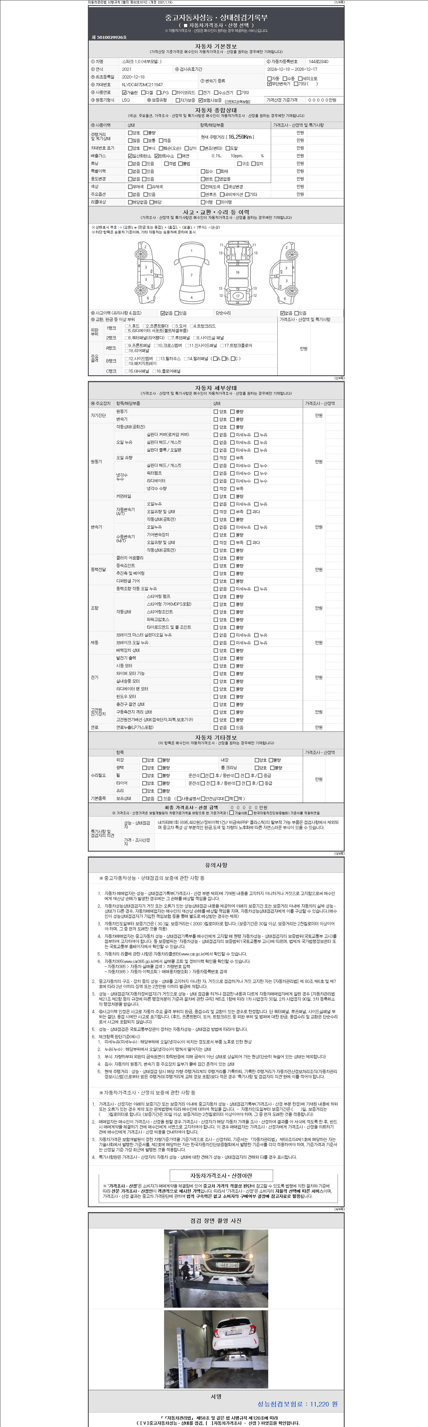 | 주행거리 | 16,259 km | 차량번호 | 144로2840 | 사고유무 | 성능기록부 참조 | 제시번호 | 제 2147483647 호 |