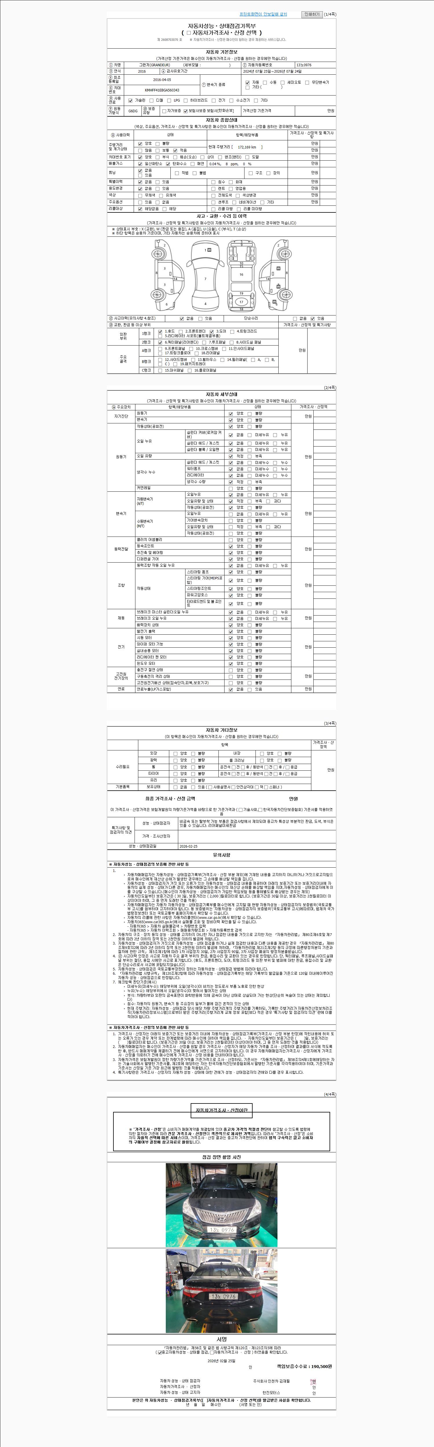 - 사고유무 : 성능기록부 참조